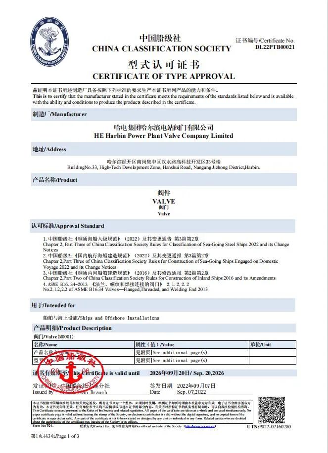 近日,哈電集團(tuán)閥門公司通過中國船級社(CCS)換證現(xiàn)場審核并再次獲得中國船級社型式認(rèn)可證書,這標(biāo)志著閥門公司船用閥門質(zhì)量管理體系和船用閥門設(shè)計、制造能力再次獲得中國船級社認(rèn)可,公司中國船級社認(rèn)可證書換證成功。